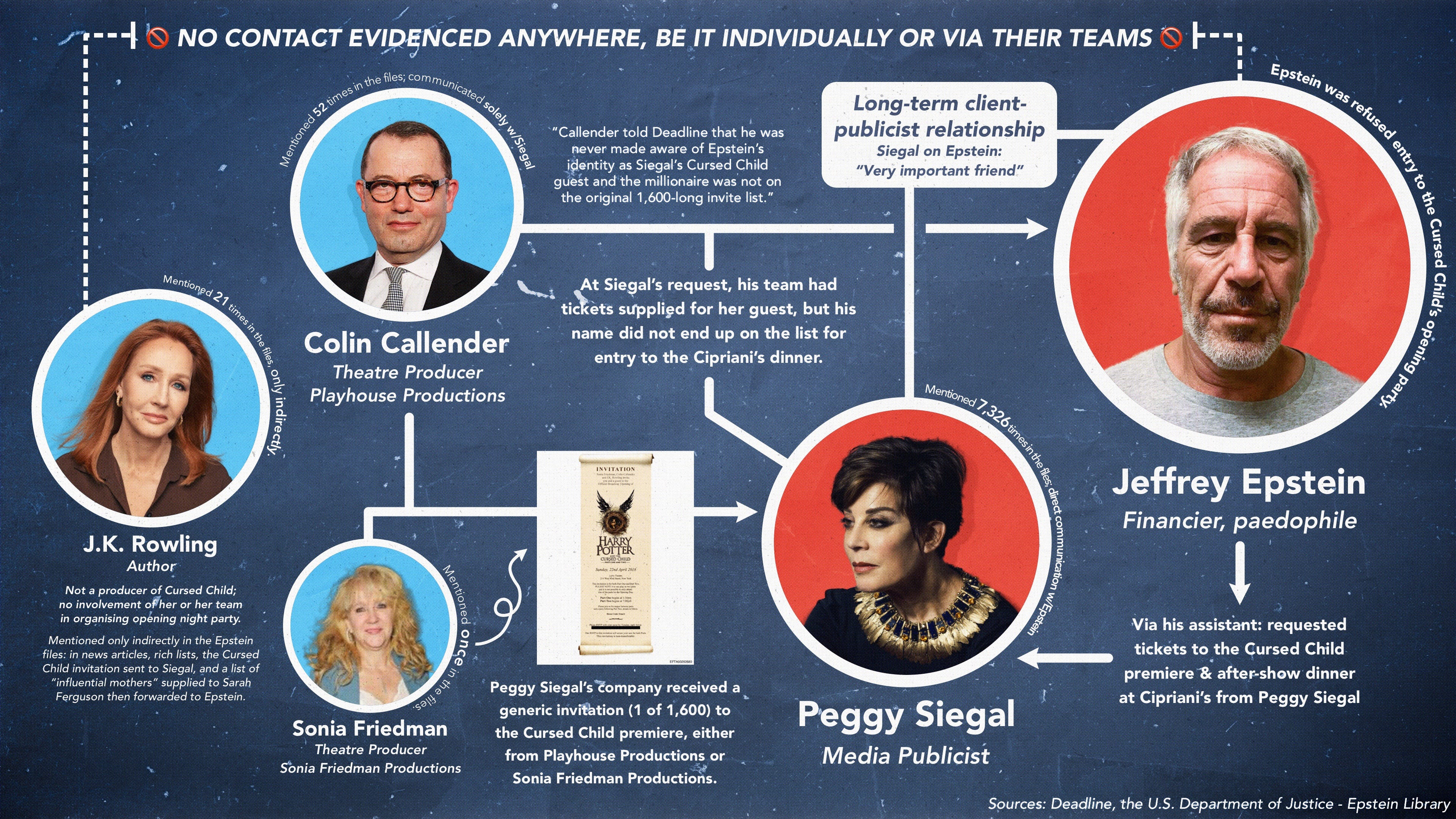In other words: Epstein was not originally invited; he attempted to obtain access through last-minute manoeuvring that did not involve Rowling’s team; and he was refused entry because his name was not on the list.